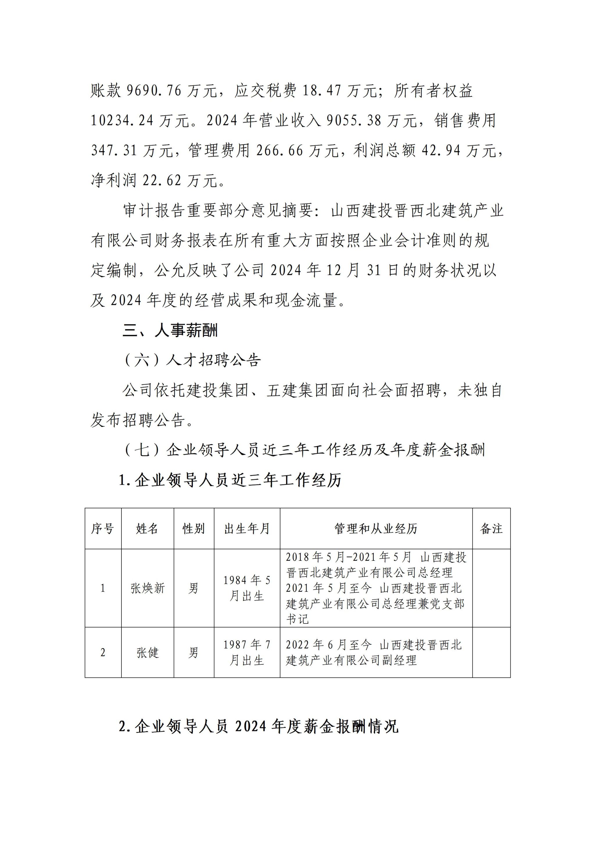 山西建投晋西北建筑产业有限公司2024年度企业重大信息公开