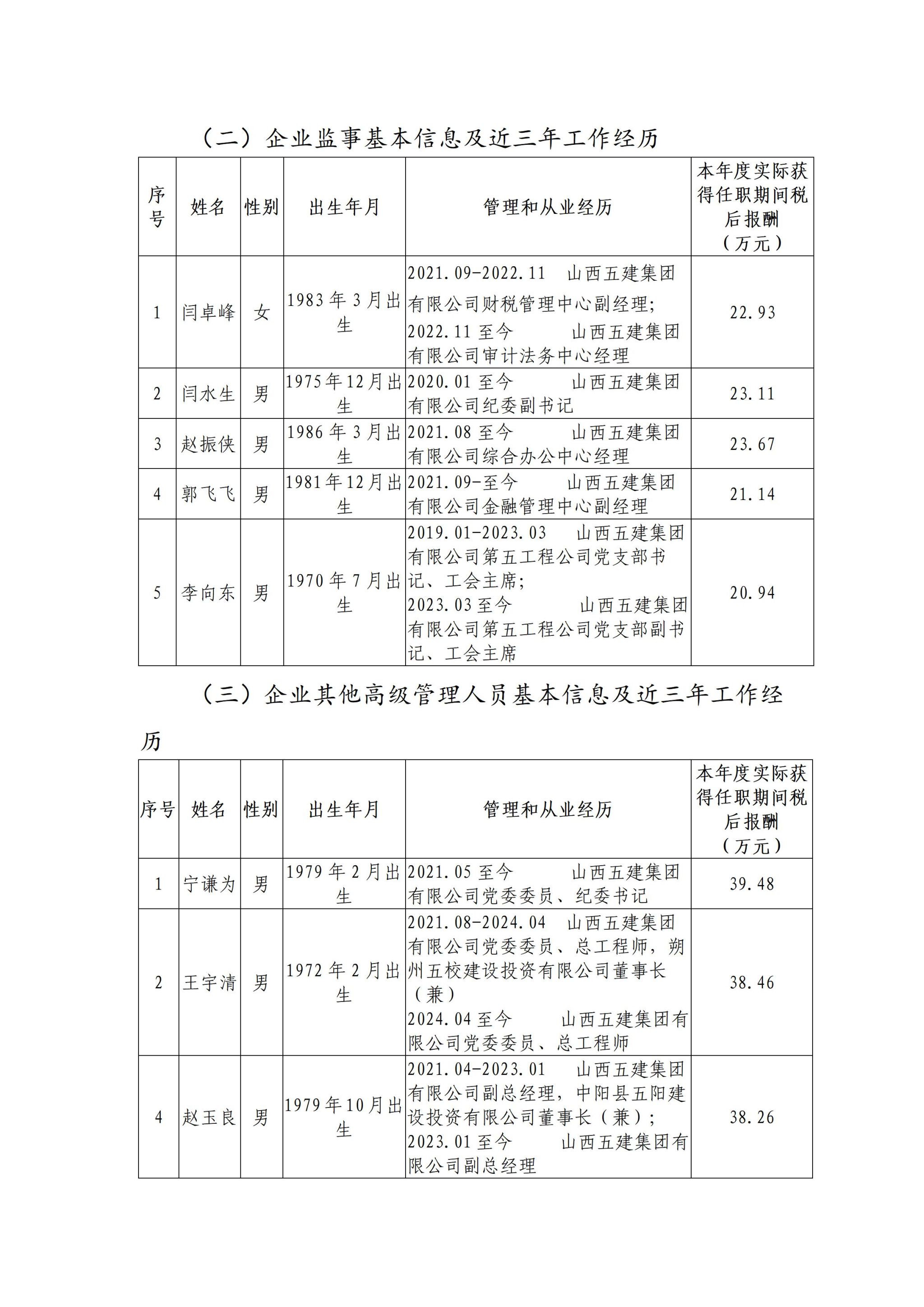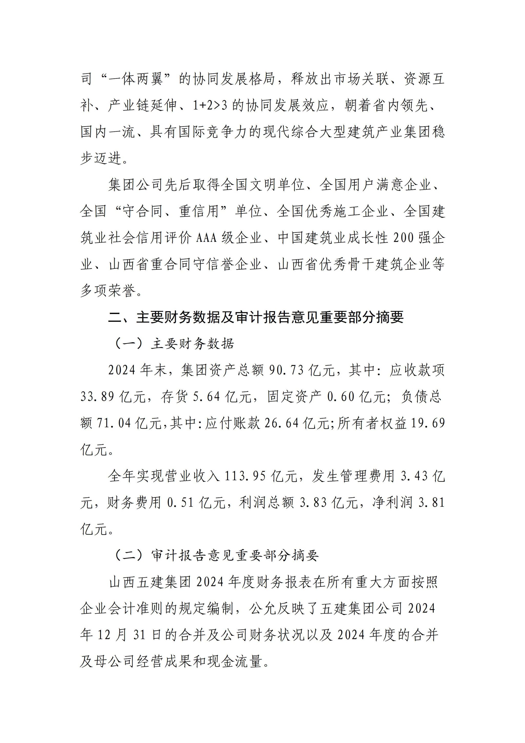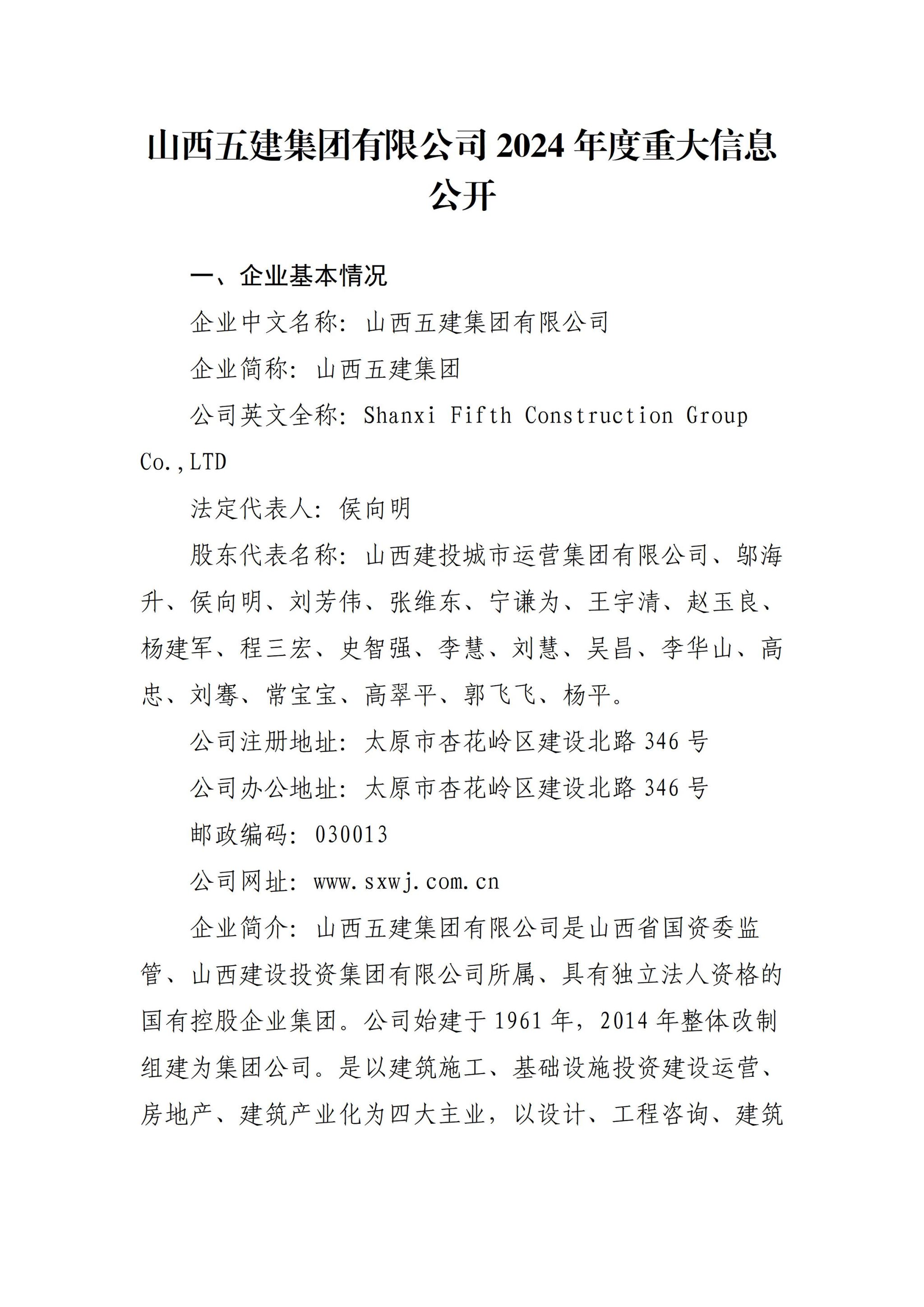 山西五辰建设发展有限公司2024年度企业重大信息公开