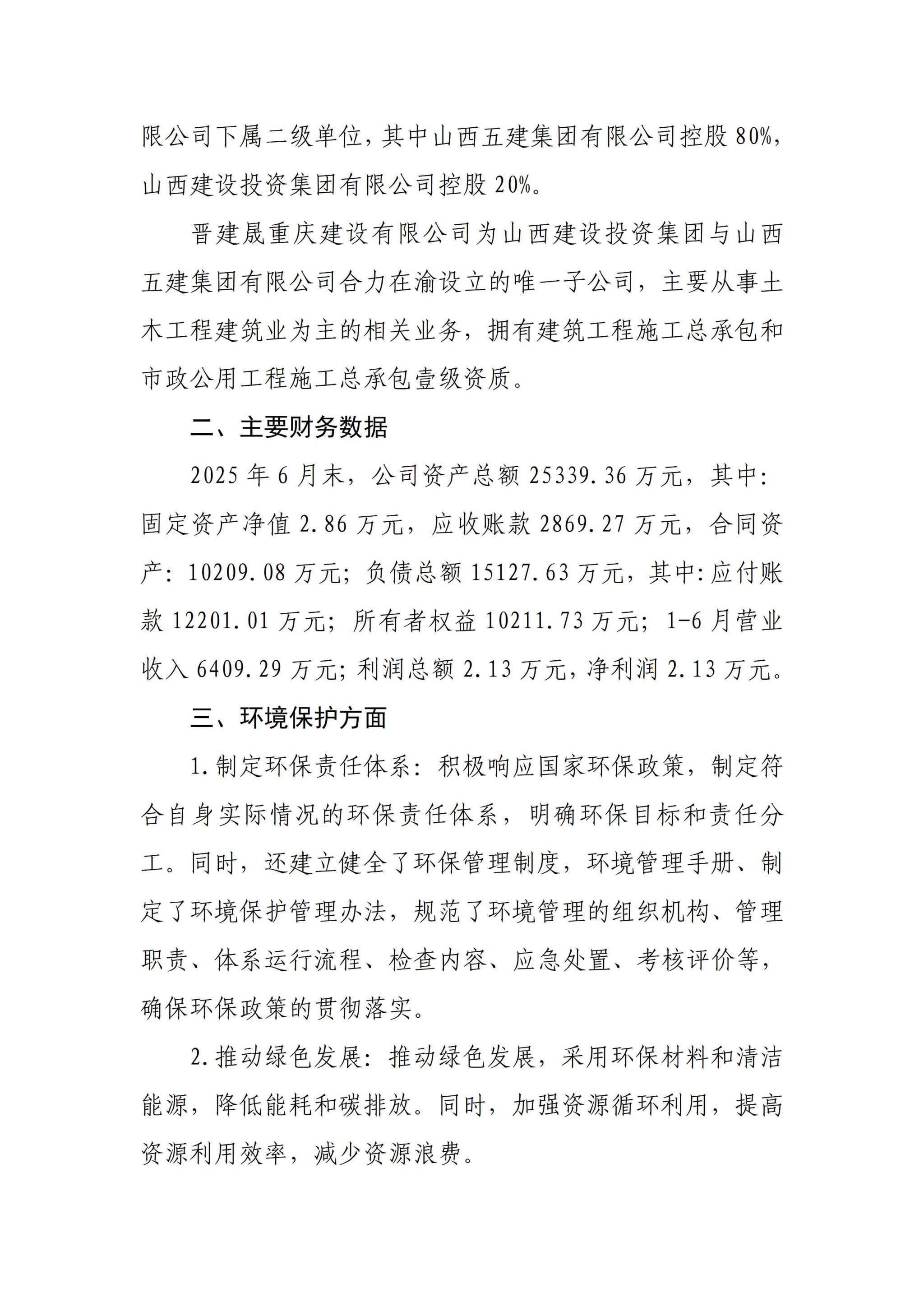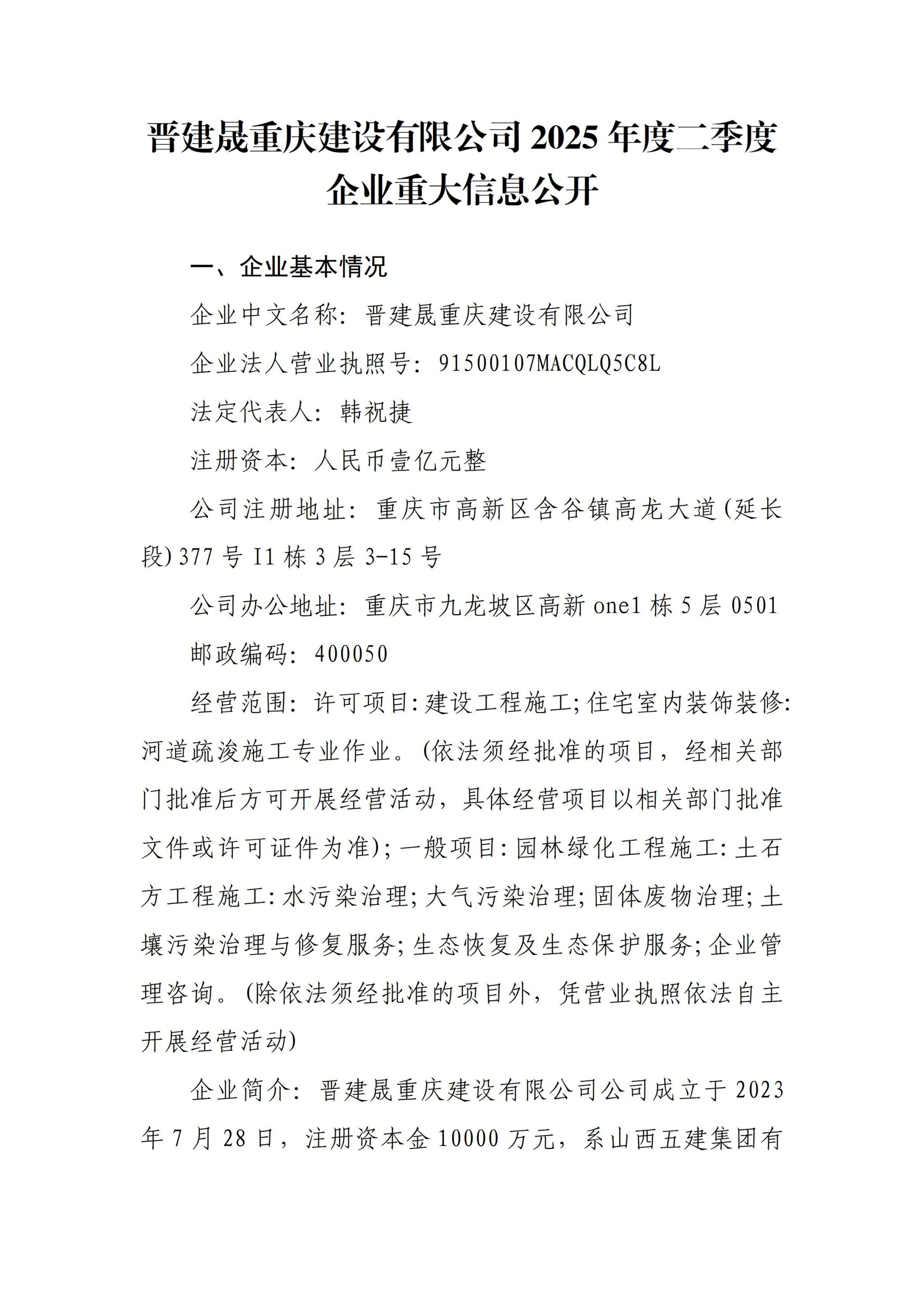 晋建晟重庆建设有限公司2025年二季度企业重大信息公开