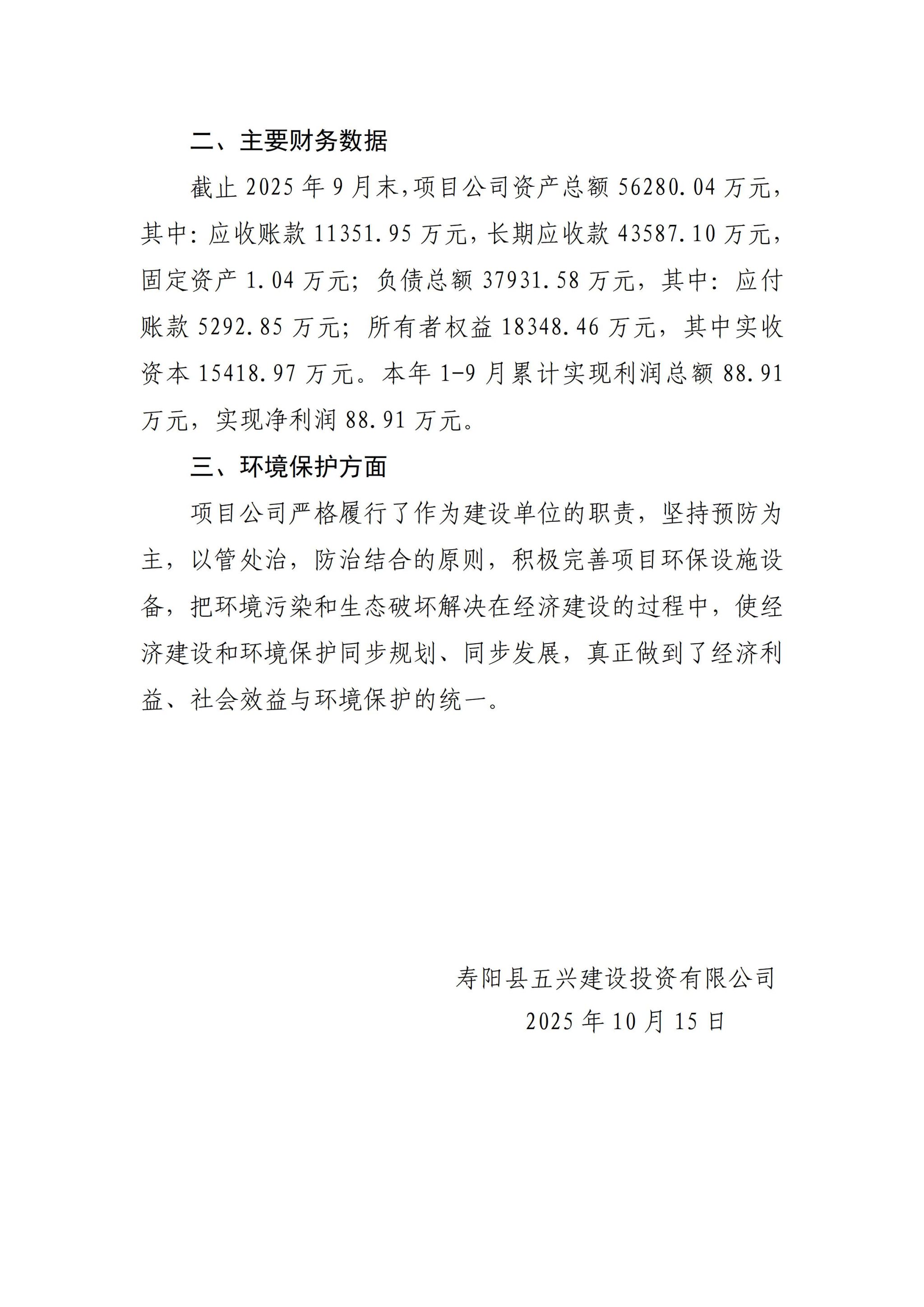 寿阳县五兴建设投资有限公司2025年三季度企业重大信息公开